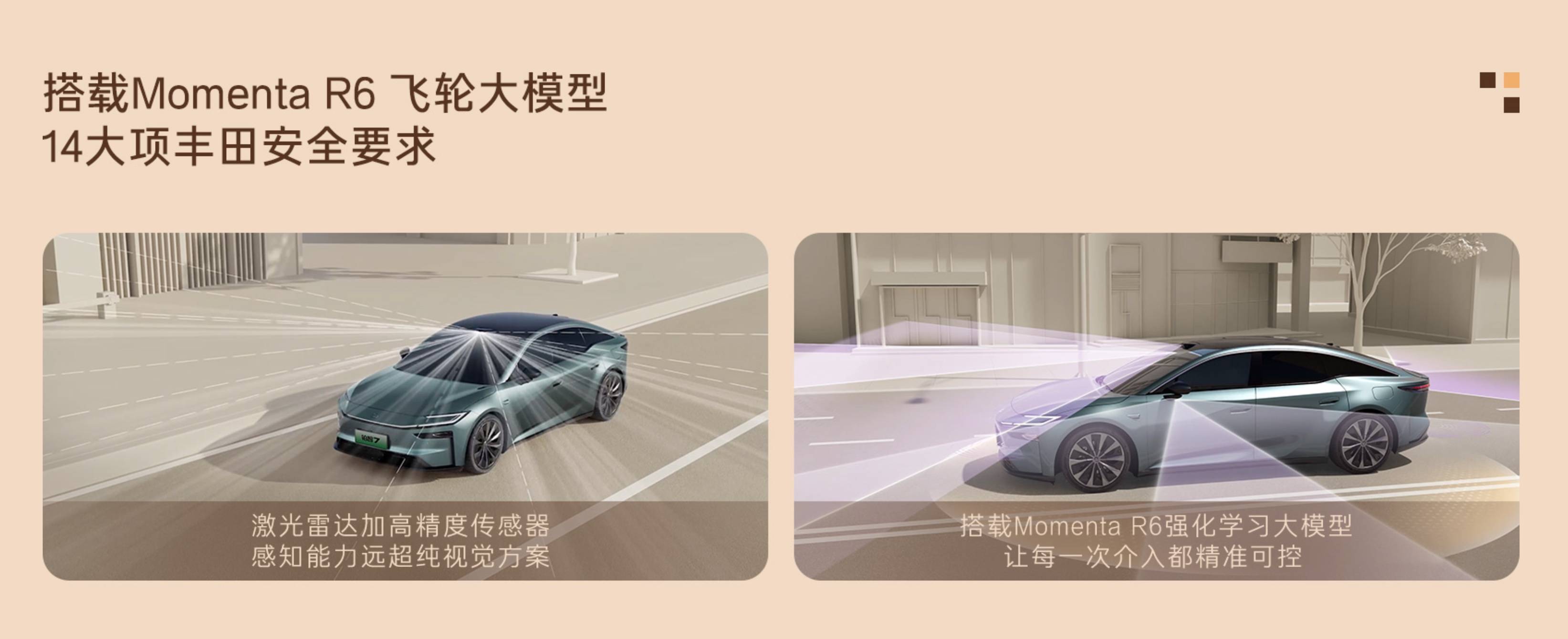 在中国市场更看重的智驾层面,铂智 7 延续了铂智 3X 的路径:采用 Momenta R6 高阶方案,并配置激光雷达。